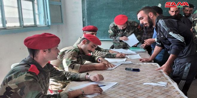 وانضم أمس عشرات المطلوبين والفارين من الخدمة العسكرية من مدينة جاسم ومحيطها بريف درعا الشمالي لليوم الثالث إلى عملية تسوية الأوضاع وتسليم السلاح إلى الجيش العربي السوري في المدينة.