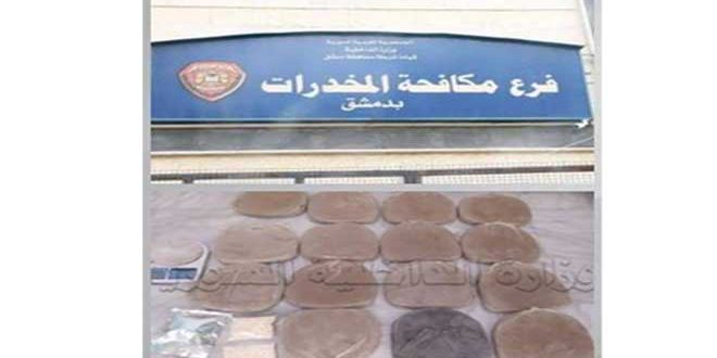 وذكرت وزارة الداخلية في بيان تلقت سانا اليوم نسخة منه أنه نتيجة الجهود التي يقوم بها فرع مكافحة المخدرات بدمشق في متابعة متعاطي ومروجي المواد المخدرة تمكن من توقيف شخص في محلة الحسينية عثر بحوزته على كمية ثمانية كيلوغرامات من مادة الحشيش المخدر وكذلك توقيف شخصين في محلة الطبالة عثر بحوزتهما على كمية ثلاثة كيلوغرامات من مادة الحشيش المخدر و500 حبة كبتاغون مخدرة و50 حبة نوع زولام.