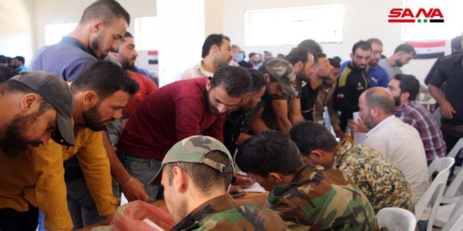 تواصلت لليوم الثاني على التوالي عملية تسوية أوضاع المسلحين والمطلوبين والفارين من الخدمة العسكرية وتسليم السلاح للجيش العربي السوري في مدينة الصنمين ومحيطها بريف درعا الشمالي وفق الاتفاق الذي طرحته الدولة.