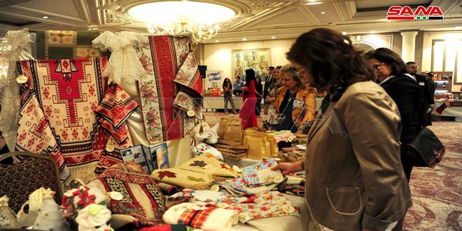 أعمال فنية وأشغال يدوية ومنتجات غذائية تمثل تراث 19 بلداً شاركت في البازار الخيري الذي أقامته اليوم سيدات النادي الدبلوماسي في سورية بفندق داما روز بدمشق.