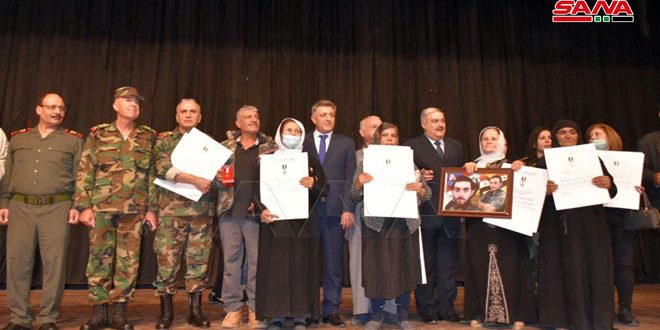 قدمت مديرية شؤون المفقودين والشهداء في وزارة الدفاع وسام الإخلاص لـ 215 أسرة شهيد في محافظة حماة وفاء لتضحيات أبنائهم وتكريما لهم وذلك في دار الأسد للثقافة والفنون.