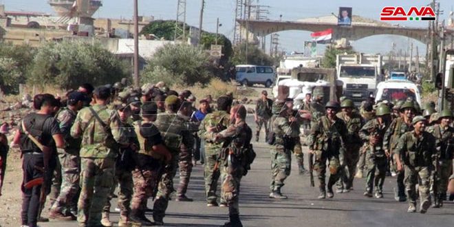 وأفاد مراسل سانا في درعا بأن وحدات من الجيش بدأت منذ صباح اليوم عمليات تمشيط وتفتيش على جوانب الطرقات العامة المؤدية إلى قرى نصيب وأم المياذن والطيبة ومداخلها ومحيطها ورفع المخلفات المتفجرة إن وجدت حفاظاً على حياة المدنيين وتمهيدا لعودة مؤسسات الدولة لعملها الخدمي المعتاد في جو من الأمن والأمان .