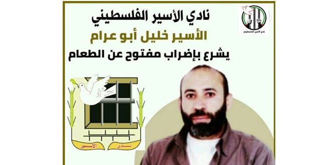 أعلن الأسير الفلسطيني خليل أبو عرام اليوم إضرابه عن الطعام احتجاجاً على جرائم الاحتلال الإسرائيلي المتواصلة بحق الأسرى.