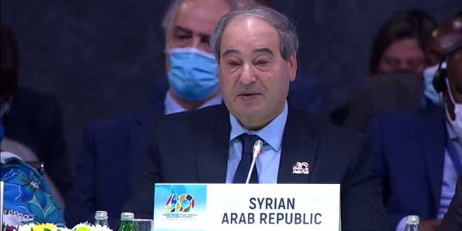 وجدد المقداد التأكيد على أن سورية ستواجه بكل قوة جميع أشكال الاحتلال والعدوان والإرهاب الأمريكي والتركي والإسرائيلي وتشدد على استعادة أراضيها المحتلة ومواصلتها ممارسة حقها الدستوري بمكافحة الإرهاب وفي حماية وصون أرضها وشعبها بكل الوسائل التي يكفلها القانون الدولي.