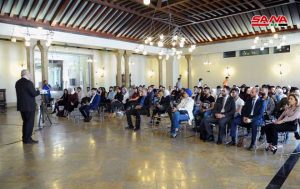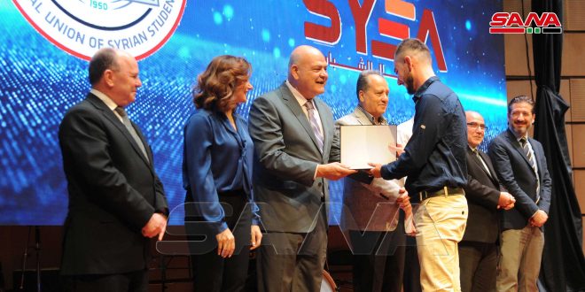 كرم الاتحاد الوطني لطلبة سورية والجمعية السورية لرواد الأعمال الشباب (سيا) اليوم 5 مشروعات رائدة لرواد الزراعة و13 مشروعاً يحملون أفكاراً إبداعية قابلة للتطبيق على مدرج جامعة دمشق.