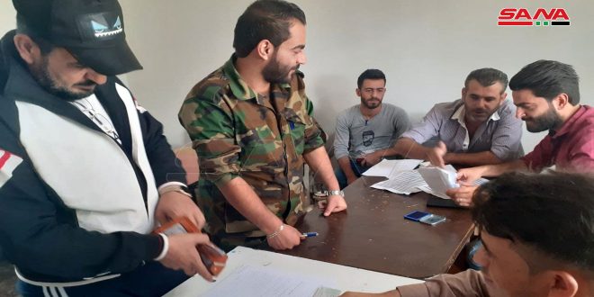 تم اليوم استكمال عمليات تسوية أوضاع ما تبقى من المسلحين والمطلوبين في بلدة صيدا ومحيطها بريف درعا الشرقي وفق الاتفاق الذي طرحته الدولة.