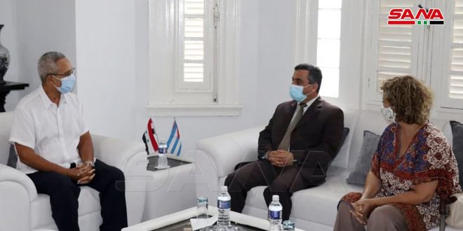 حضر اللقاء الملحق الدبلوماسي بالسفارة السورية في هافانا علي عباس .