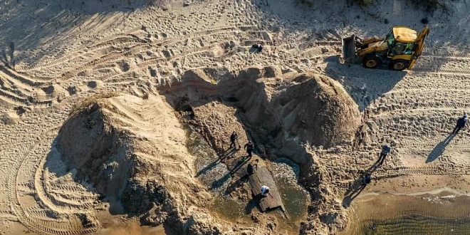 عثر على حطام سفينة يبلغ طوله 40 قدماً مدفوناً تحت رمال شاطئ في لاتفيا ويعود تاريخه إلى نحو 200 عام.