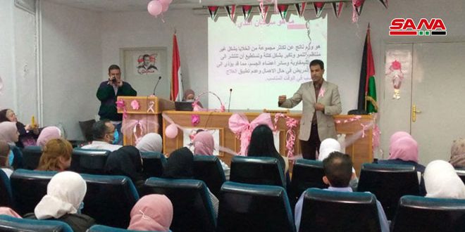 وبين مدير صحة القنيطرة الدكتور عوض العلي في تصريح لمراسل سانا أن النشاطات تضمنت ندوات ولقاءات للتوعية بأهمية إجراء الفحوص الطبية المبكرة وأعراض المرض وأسباب انتشاره وطرق الوقاية منه وكيفية إجراء الفحص الذاتي للثدي لافتاً إلى أن المديرية جهزت جميع المراكز الصحية لتنفيذ النشاطات المرافقة للحملة المجانية الخاصة بالكشف المبكر عن سرطان الثدي للاطمئنان على صحتهن.