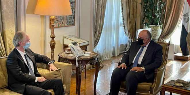 وقال المتحدث الرسمي باسم وزارة الخارجية المصرية عبر حسابه بموقع تويتر إن شكري التقى اليوم في القاهرة مبعوث الأمين العام للأمم المتحدة الخاص إلى سورية غير بيدرسون وجرى خلال اللقاء مناقشة الوضع في سورية وأبعاده المختلفة.