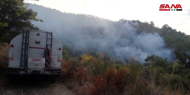2021-10-15اللاذقية-سانااندلع حريق في أراض زراعية وحراجية بين ساقية الكرت وجبل النوبة بريف اللاذقية الشمالي.وأفاد مراسل سانا بأن فرق الإطفاء تتعامل مع الحريق للسيطرة عليه بالتعاون مع مروحية للجيش العربي السوري وعناصر من الجيش. اندلاع حريق في أراض زراعية 2021-10-15Afraa