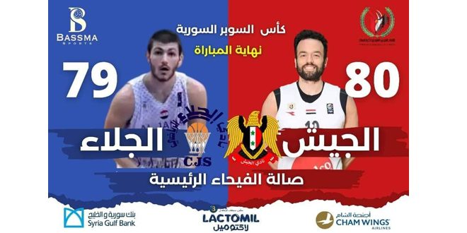 حقق فريق الجيش فوزاً صعباً على الجلاء بنتيجة 80-79 نقطة في المباراة التي أقيمت اليوم على أرض صالة الفيحاء بدمشق ضمن منافسات بطولة السوبر بكرة السلة للرجال.