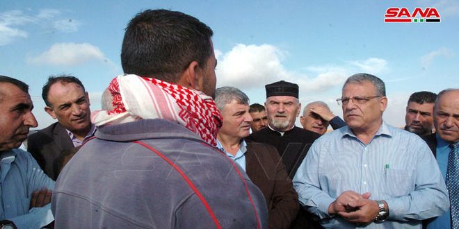 وأشار قطنا خلال جولة شملت عدداً من قرى محافظة السويداء هي الصورة الكبيرة ومقص الأشعري وبادية السويداء والمتونة ودوما وسد الزلف وضهر الجبل والقينة إلى أن الوزارة حريصة على تأمين مستلزمات المربين وزيادة مخصصات الثروة الحيوانية لديهم من الأعلاف وإيجاد الحلول للمشاكل التي تواجه عملهم ودعم المحافظة بالآليات اللازمة لاستصلاح الأراضي لزيادة المساحة القابلة للاستثمار الزراعي.