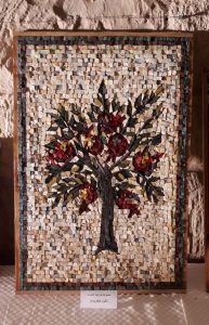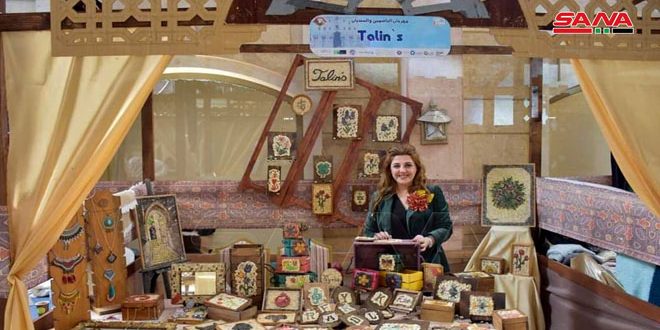 تترجم السيدة تالين مكرويان من حلب حبها للتراث من خلال أعمالها اليدوية في صناعة الإكسسوارات التقليدية وتشكيل اللوحات الفسيفسائية التي تجسد التراث بتصاميم مميزة وملفتة بألوانها ودقة صناعتها.
