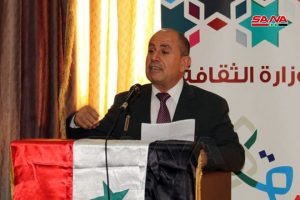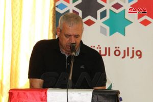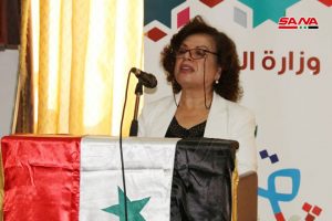 وكانت نصوص الشاعرة أميمة إبراهيم رئيسة فرع اتحاد كتاب حماة تعبر عن التزام المرأة بقضايا الوطن ومواجهة الإرهاب والتصدي لكل من يحاول النيل من ثقافتنا وذلك بأسلوب نثري مشكل بالفن والصور.