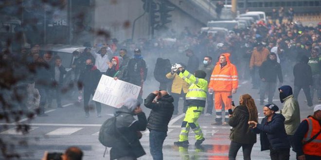 استخدمت الشرطة الإيطالية العنف لتفريق المتظاهرين الذين تجمعوا عند إحدى بوابات ميناء تريستي بمقاطعة “فريولي ينيتسيا جوليا” شمال البلاد احتجاجاً على إجبار الموظفين للحصول على بطاقة المرور الخضراء في أماكن العمل.
