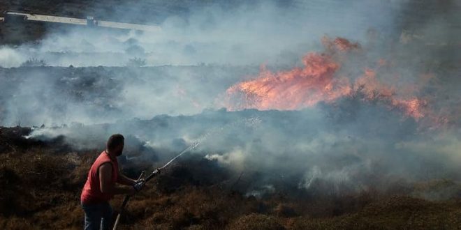أخمد عناصر الدفاع المدني في محافظة حمص بالتعاون مع إطفاء مديرية الزراعة اليوم حريقاً اندلع في أشجار زيتون وأعشاب يابسة في الأراضي الزراعية لبلدتي شين والصويري بريف المحافظة الغربي.