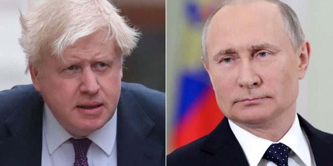 بحث الرئيس الروسي فلاديمير بوتين في اتصال هاتفي اليوم مع رئيس الوزراء البريطاني بوريس جونسون سبل الحفاظ على الاتفاق النووي الموقع مع إيران.