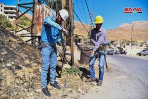 وشملت الأعمال أيضاً حسب وهبي مد شبكات من محطة خان الشيح بطول 7 كيلومترات لقرية بيت تيما وكبل بطول 2350 متراً ضمن القرية وتأهيل شبكة كهربائية بطول 6 كيلومترات وإعداد مناورة بين خطي عرنة وآبار الريمي مبيناً أن العمل استغرق حوالي الشهرين واجهوا خلاله صعوبات عدة بسبب وعورة المنطقة الجبلية وعدم توافر طرق للآليات ما اضطر عمال الطوارئ لحمل المعدات والسير على الأقدام للوصول إلى أماكن العمل وإنجازه.
