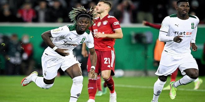 سجل بروسيا مونشنجلادباخ ثلاثة أهداف في أول 21 دقيقة ليسحق بايرن ميونيخ بطل ألمانيا بخماسية نظيفة اليوم ويخرجه من الدور الثاني لبطولة الكأس.