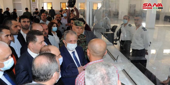 واختتم الوفد جولته بزيارة معبر نصيب الحدودي حيث اطلع على أعمال تأهيل المباني الإدارية والمركز الصحي ومركز الجمارك والسوق الحرة وقاعة الشرف وعلى الخدمات المقدمة في مركز الهجرة والجوازات والتقى المهندس عرنوس عدداً من المواطنين السوريين والعرب القادمين عبر المعبر واستمع إلى واقع الخدمات المقدمة في صالتي القدوم والمغادرة وشدد على أهمية تبسيط الإجراءات والسرعة في الإنجاز.