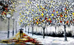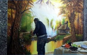وحول المراحل التي يقطعها لإنجاز اللوحة يوضح أنه يعمد بداية إلى تحضيرها وتحديد أبعادها ويعمل بالمعجونة الخاصة به لإضفاء مزيد من الأبعاد والجاذبية عليها فأكثر ما يستهويه الطبيعة بكل تفاصيلها الدقيقة وسحرها على مدار الفصول منوهاً بأنه اشتغل لوحات تمثل هوية البلدان منها لوحات باريسية من خلال صور للمدينة وأخرى فرعونية.