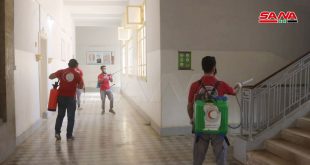 وأوضح الدكتور عبد الباسط الخطيب رئيس الجامعة في تصريح لمراسل سانا أن حملة التعقيم تهدف لحماية الطلبة والأساتذة والعاملين في الجامعة مشيراً إلى أهمية التقيد بالإجراءات الاحترازية للوقاية من الفيروس وعدم التجمع بأعداد كبيرة حفاظاً على السلامة لأن المسؤولية مشتركة بين الطلاب والإدارات لحماية المجتمع.