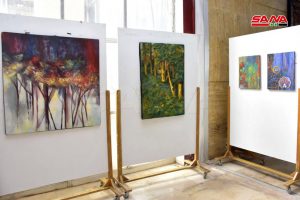 فيما شاركت الفنانة التشكيلية لوسي مقصود من الكادر التدريسي لطلاب كلية الفنون بلوحة تصور مجموعة اشجار بأنها العنصر الوحيد الذي بقي في هذه الأرض ولم يتركها ولسان حالها يقول “من كانت له جذور ستكون له ثمار فالشجرة برمزيتها هي جذور وثمار وأغصان متأصلة بالأرض ومعطاءة بلا حدود”.