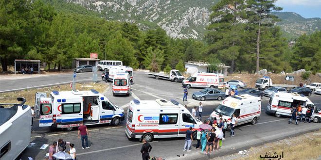 وكان شخص لقي مصرعه وأصيب 49 آخرون في حادث تصادم حافلة مدرسية بحافلة تقل سياحا في اقليم موغلا جنوب غرب تركيا الشهر الماضي.