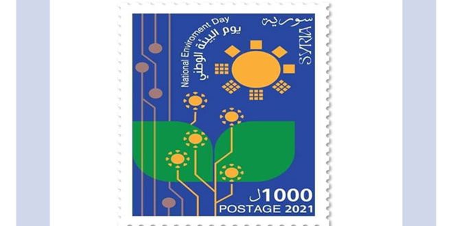 أصدرت المؤسسة السورية للبريد طابعاً بريدياً تذكارياً بمناسبة يوم البيئة الوطني الذي يصادف في الأول من تشرين الثاني من كل عام.