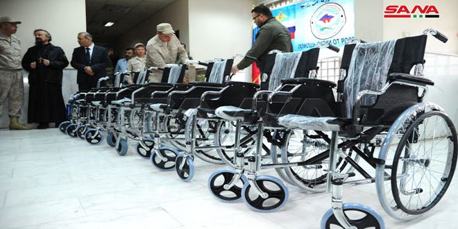 توزيع مساعدات روسية في معهد الأمل للإعاقة الحركية بدمشق