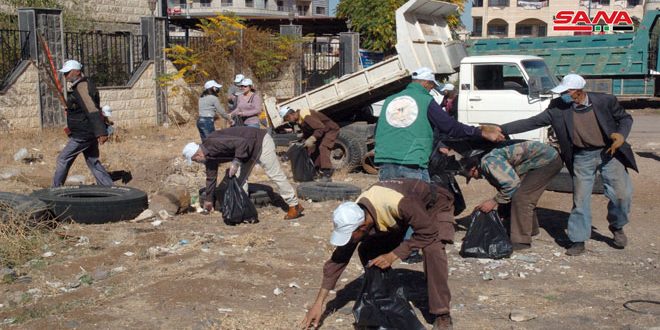 نظمت مديرية البيئة في محافظة السويداء اليوم بالتعاون مع مجلس مدينة السويداء وفرع نقابة المهندسين حملة نظافة في حي الوحدة والحرية بالمنطقة الواقعة في جوار مبنى المديرية وذلك في إطار فعاليات الاحتفال بيوم البيئة الوطني.