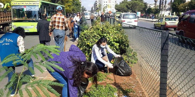 نفذت مديرية البيئة في حمص بالتعاون مع مديريتي الحدائق والنظافة في مجلس المدينة وبمشاركة عدد من طلبة جامعة البعث حملة نظافة واسعة وتنسيق للمنصف والأحواض الحدائقية على الطريق الرئيسي المنطلق من دوار السيد الرئيس باتجاه دوار الثامن من آذار.