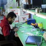 وفي معمل صناعة الالكترونيات تحدث الصناعي حازم قصار صاحب المعمل عن إنتاجهم المتمثل بكابلات الهواتف الخلوية واكسسواراتها وكابلات الكاميرات والشاشة وأجهزة التسجيل (دي في ار) والتي تسهم بتلبية حاجة السوق المحلية والانتقال لمرحلة التصدير إلى البلدان العربية.