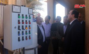 وخلال جولة اللجنة الوزارية المكلفة متابعة الواقع الخدمي والتنموي في دير الزور اليوم برئاسة وزير النفط والثروة المعدنية المهندس بسام طعمة يرافقه وزير الدولة لشؤون الاستثمار محمد فايز البرشة للاطلاع على نسب إنجاز مشروع إعادة تأهيل محطات مياه طريق الشام وواقع عمليات قطاف وتسويق محصول القطن بريف دير الزور الغربي ومشروع إعادة تأهيل الصرف الصحي ببلدة الشميطية بين مدير مؤسسة مياه الشرب بدير الزور المهندس جاسم الحميد أن نسبة إنجاز مشروع صيانة محطات طريق الشام بلغت نحو 90 بالمئة.