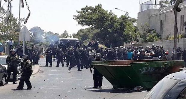 اندلعت مواجهات بين عشرات المواطنين الفلسطينيين وقوات الاحتلال الإسرائيلي خلال تشييع جثمان الشهيد الفتى محمد حسين أبو خضير في حي شعفاط قضاء مدينة القدس المحتلة.
