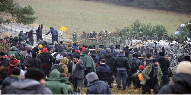 وذكرت لجنة الحدود الحكومية في بيلاروس في وقت سابق أن مجموعة كبيرة من اللاجئين الذين يحملون أمتعتهم كانوا يتحركون على طول طريق سريع باتجاه الحدود البولندية.