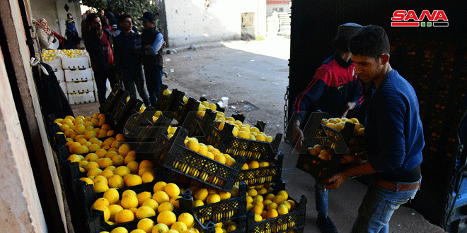 وبين معطي أن الكمية التي وصلت صباح اليوم إلى سوق الهال بدمشق 20 طناً وستصل مساء اليوم كمية 30 طناً حيث ستزيد الكمية اليومية بشكل متتابع ليتم فرزها وتوضيبها ورفد الصالات بها في محافظتي دمشق وريفها وهناك سيارات جوالة لبيع الحمضيات في المناطق التي لا يوجد فيها صالات لافتاً إلى إرسال كميات أخرى إلى المحافظات الشمالية والشرقية والوسطى والجنوبية من محافظتي اللاذقية وطرطوس.