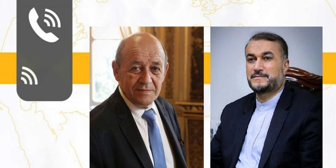 وقال عبد اللهيان خلال اتصال هاتفي اليوم مع وزير خارجية فرنسا جان لودريان أن البرنامج الدفاعي حق سيادي لكل دولة وإيران ستواصل المضي بحزم نحو تعزيز قدراتها الدفاعية من دون الاكتراث إلى سلوك الحظر الأمريكي غير البناء.