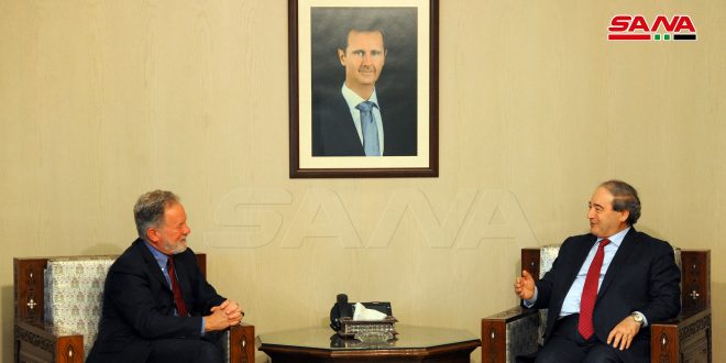بحث الدكتور فيصل المقداد وزير الخارجية والمغتربين اليوم مع ديفيد بيسلي المدير التنفيذي لبرنامج الغذاء العالمي والوفد المرافق علاقة التعاون بين الحكومة السورية وبرنامج الغذاء العالمي والخطط الاستراتيجية المقبلة وسبل تعزيزها.