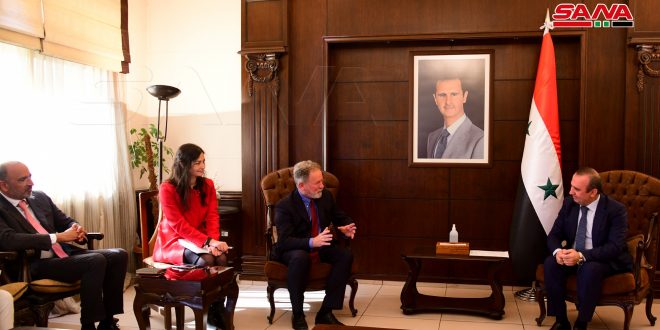 الوزير مخلوف أكد خلال اللقاء أهمية التنسيق والعمل المشترك والاستجابة السريعة لمتطلبات السكان لتحقيق الهدف الذي يصبو إليه البرنامج واللجنة العليا للإغاثة وتنفيذ المزيد من المشاريع وصولاً إلى مرحلة التعافي منوهاً بالجهود التي يقدمها البرنامج في سورية لرفع مستوى الدعم والمساعدات.