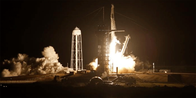 أقلع ثلاثة رواد فضاء أميركيين ورابع ألماني إلى محطة الفضاء الدولية على متن مركبة سبايس إكس في مهمة في المدار تستمر ستة أشهر كان من المفترض أن تبدأ قبل عشرة أيام لكنها أرجئت مراراً.
