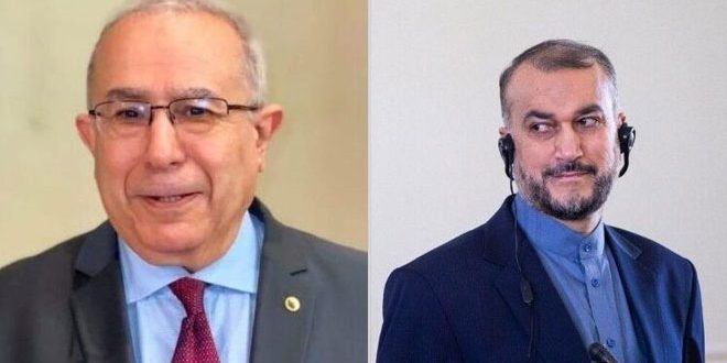 بحث وزير الخارجية الإيراني حسين أمير عبداللهيان ووزير الشؤون الخارجية والتعاون الدولي الجزائري رمطان لعمامرة في اتصال هاتفي اليوم تعزيز العلاقات الثنائية والوضع في منطقة الشرق الأوسط وقارة إفريقيا.