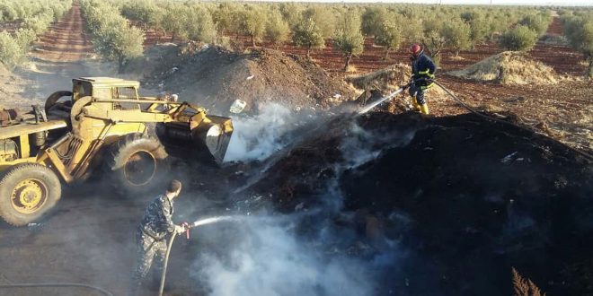 وفي السويداء أخمد فوج الإطفاء عدة حرائق أحدها نشب بتفل الزيتون في معصرة الثعلة حيث أوضح مصدر في فوج إطفاء السويداء لـ سانا أن الفوج تعامل صباح اليوم عبر آليتي إطفاء مع حريق معصرة الثعلة الناجم عن اشتعال تفل الزيتون داخلها حيث تمت السيطرة عليه وإخماده والاستعانة بالية جرافة لقلب مادة التفل وتبريدها لضمان عدم اشتعالها مرة أخرى.