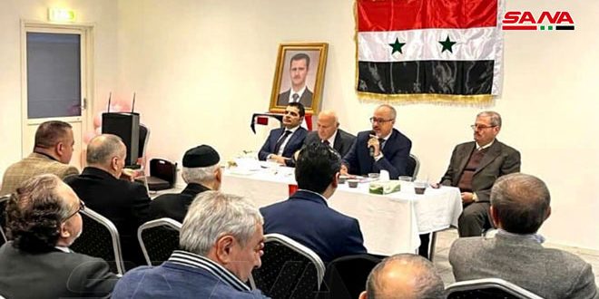 بدوره قدم القائم بأعمال السفارة بالنيابة الوزير المستشار الدكتور تميم ملكو عرضاً سياسياً تناول التطورات الأخيرة التي شهدتها سورية وانعكاساتها على كل الصعد مشيراً إلى عملية إعادة الإعمار ودور المغتربين فيها وذلك في ضوء قانون الاستثمار رقم 18 لعام 2021 لافتاً إلى التسهيلات والخدمات القنصلية المقدمة للمغتربين على كل الصعد في ظل القوانين والأنظمة النافذة وإلى سعي السفارة الدائم لتطوير أدائها بما يخدم المصلحة العامة.
