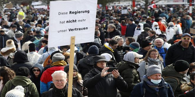 تظاهر آلاف السويسريين في جنيف ضد إجراءات التقييد التي اتخذتها الحكومة الفيدرالية الرامية لاحتواء فيروس كورونا.