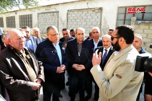 اطلع وزير الزراعة والاصلاح الزراعي المهندس محمد حسان قطنا اليوم على واقع عدد من المداجن في منطقة التل ومعامل للأعلاف وأخرى للأسمدة في مدينة عدرا الصناعية والتقى بعض المزارعين في منطقة الرحيبة ومعضمية القلمون.