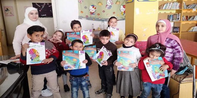 كما وزعت الشاطر قصصاً للأطفال من منشورات الهيئة العامة السورية للكتاب تشجيعا للصغار على القراءة.