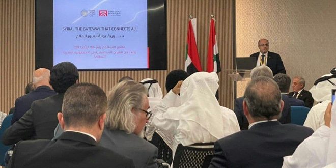 في إطار نشاطات الوفد السوري المشارك في فعاليات اليوم الوطني لسورية في معرض إكسبو دبي 2020 عقد اجتماع إحاطة الأعمال المخصص للجانب الاقتصادي تحت عنوان “سورية البوابة التي تربط الجميع”.