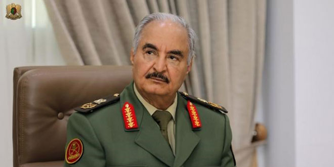وفي كلمة متلفزة اليوم بعد تقديم أوراقه أكد حفتر “تمسكه بوحدة البلاد وسيادتها واستقلالها” مشيراً إلى ضرورة “الاصطفاف إلى جانب الليبيين لتنفيذ طموحاتهم”.